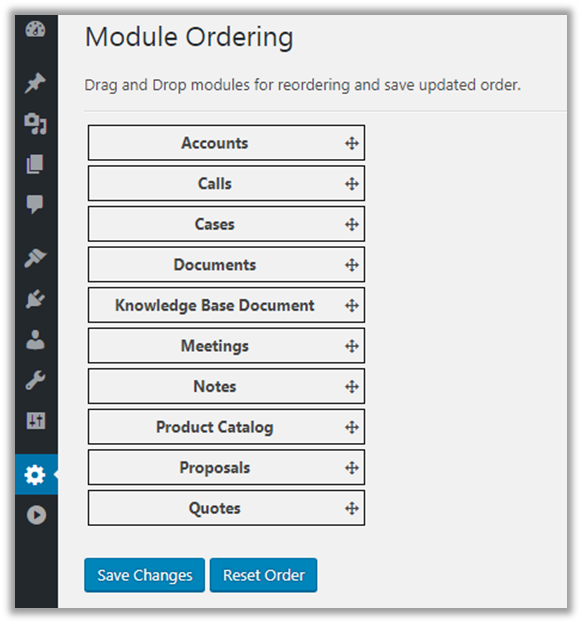 The SugarCRM Customer Portal plugin will help your customers to use several SugarCRM modules in their WP interface, which can be defined from CRM. The plugin integrates Accounts, Contacts, Calls, Meetings, Notes, Cases, Documents and Quotes module of SugarCRM to your WP interface.
