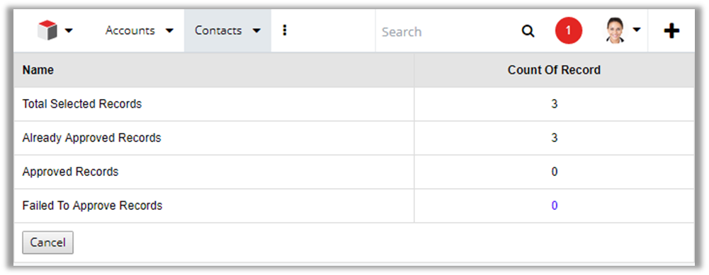 You will get the global search result of data or the selected module will be loaded as per the module’s relationship with the selected “Relation Type”, either Contact based, or Account-based.