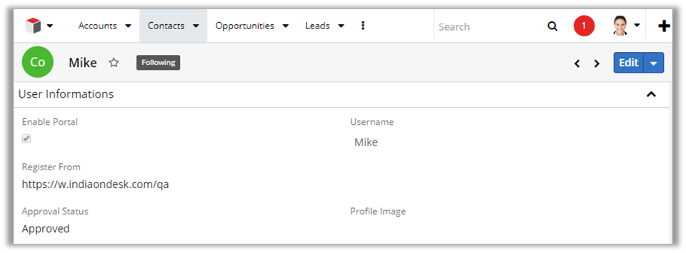 – Sign-up directly from the portal, which will also create a contact record in SugarCRM.