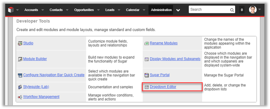 Now, need to repair your SugarCRM Instance. For that, navigate to Administration page and click on ‘Repair’ link, then click on ‘Quick Repair and Rebuild’ link.