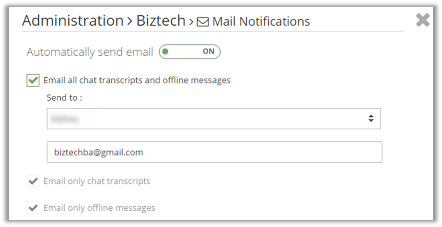 The chats can be monitored from the twak.to dashboard. Once the chat is completed, a transcript of that chat will be generated and sent to the configured email address.