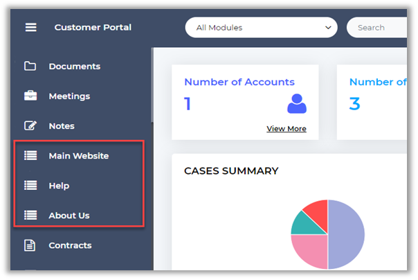Note: For the Note, Meeting, and Call modules, the data will be loaded based on the relationship with the account and accounts related to all contacts data of the contact portal logged-in Contact.