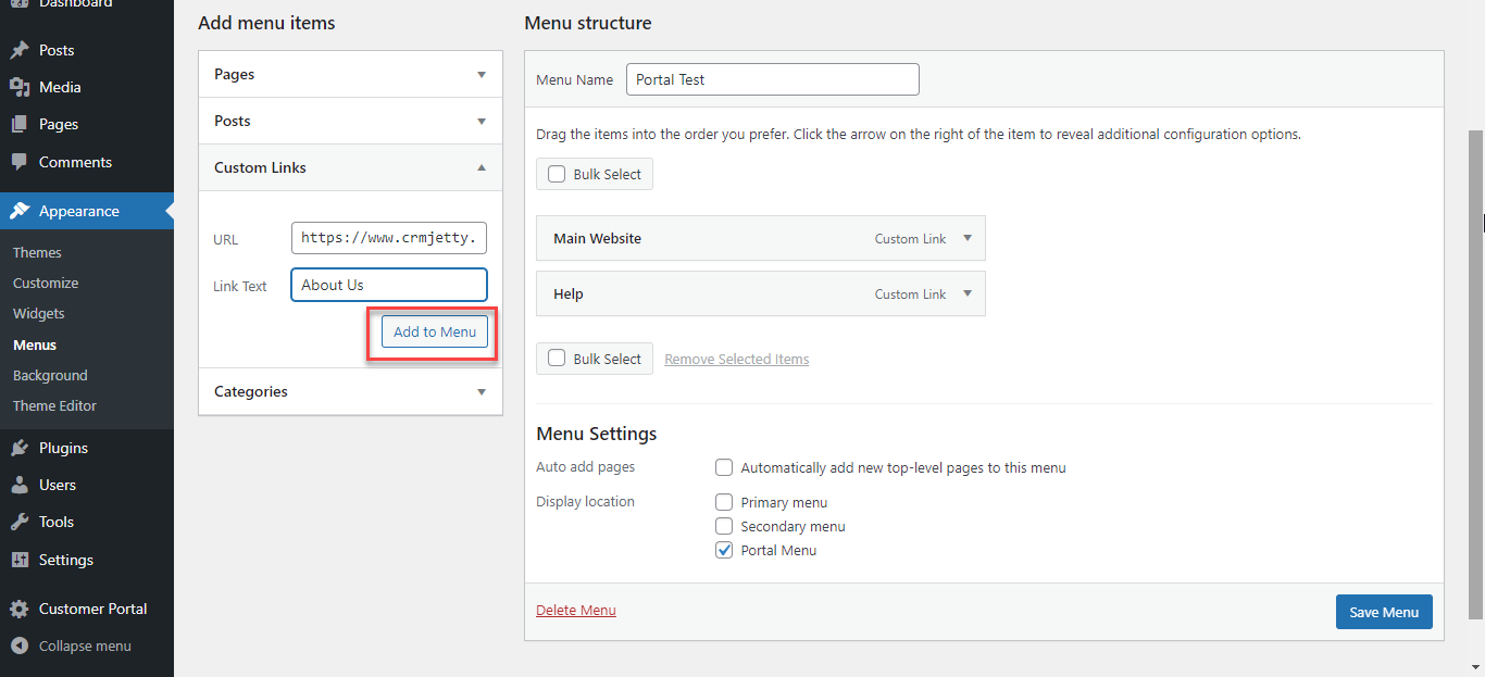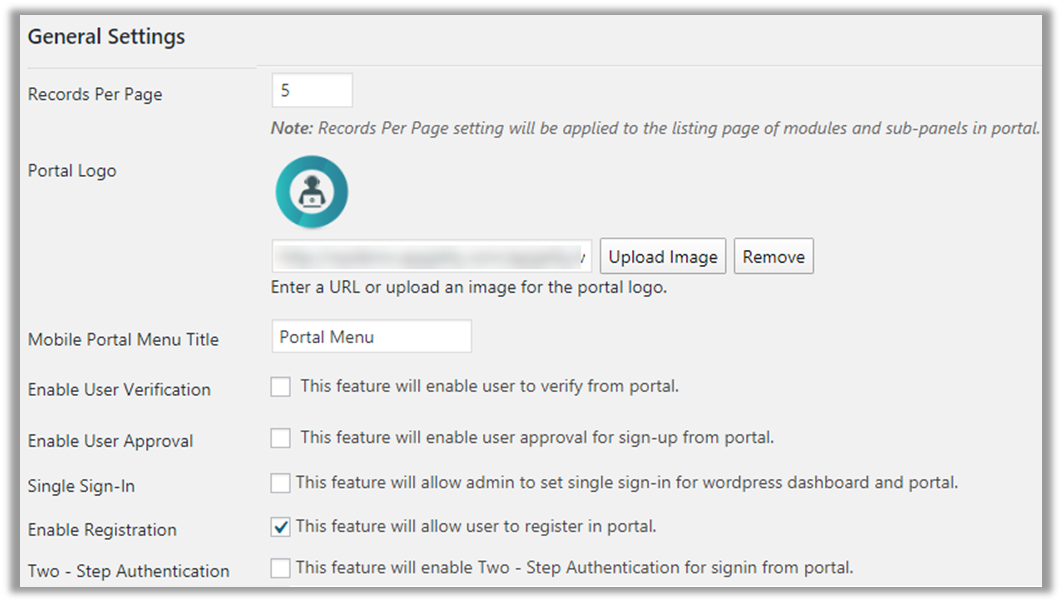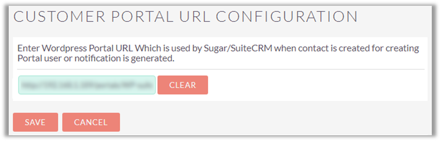 Note: WordPress portal URL configuration is mandatory for Portal user creation or for receiving notification from SuiteCRM.