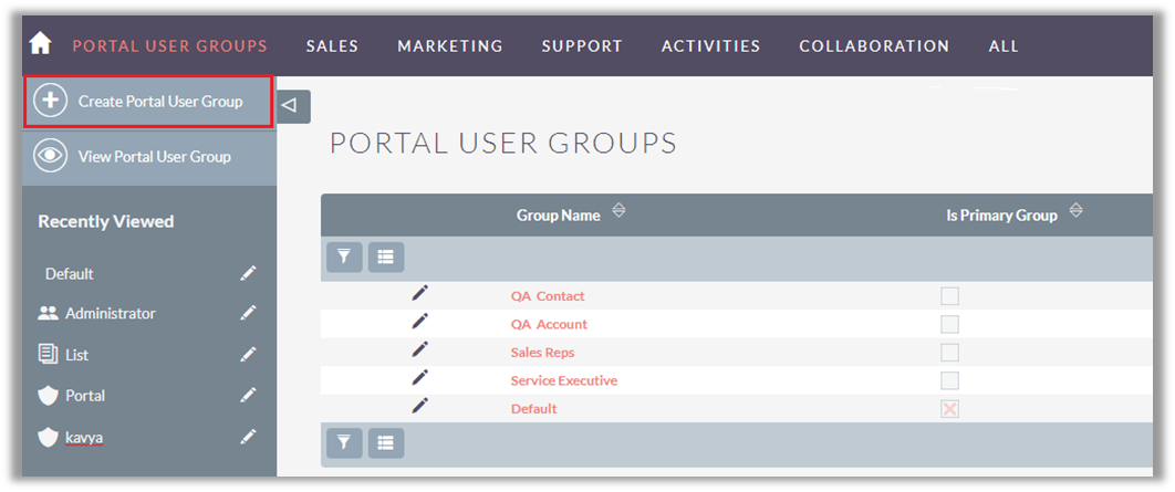 On the left panel, by clicking on ‘Create Portal User Group’, you can create a User Group with Description.
