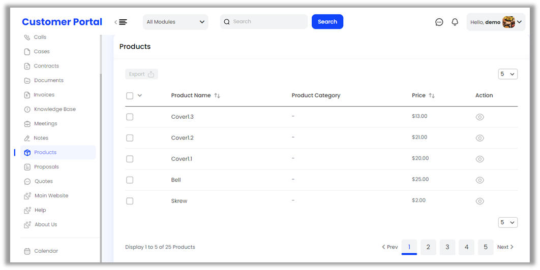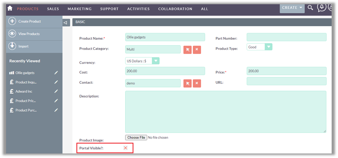 Note: Only those products will be visible in portal which are set as “portal visible” by admin from the detail view of portal.