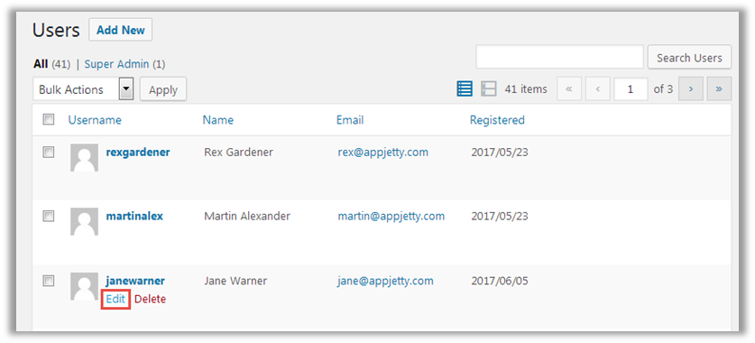 Here, you can see ‘Default’ WordPress User Group already exists in the list. User cannot delete this ‘Default’ group record. Admin user can create different ‘User Groups’ and define accessible modules for that group.
