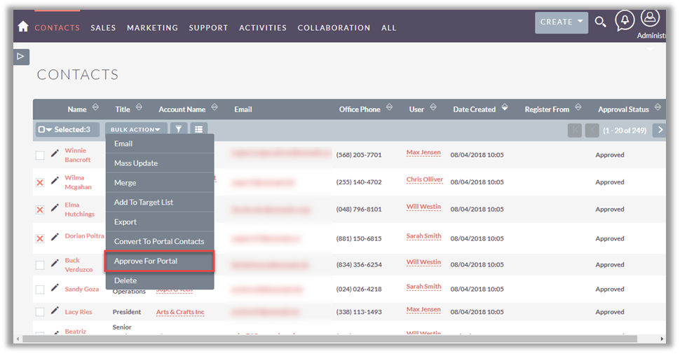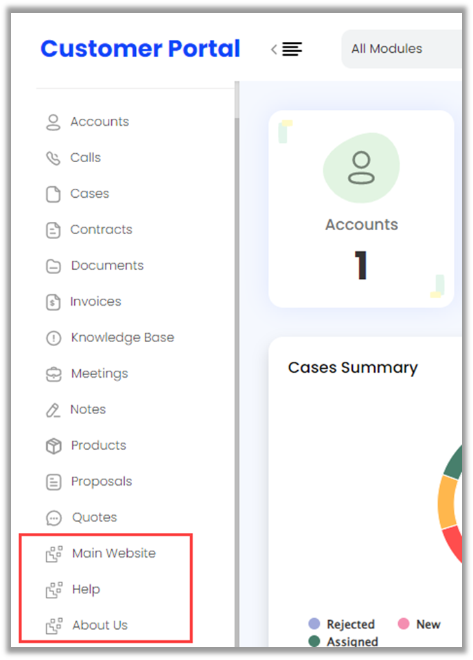 Note: For the Note, Meeting, and Call modules, the data will be loaded based on the relationship with the account and portal logged in Contact’s Accounts.