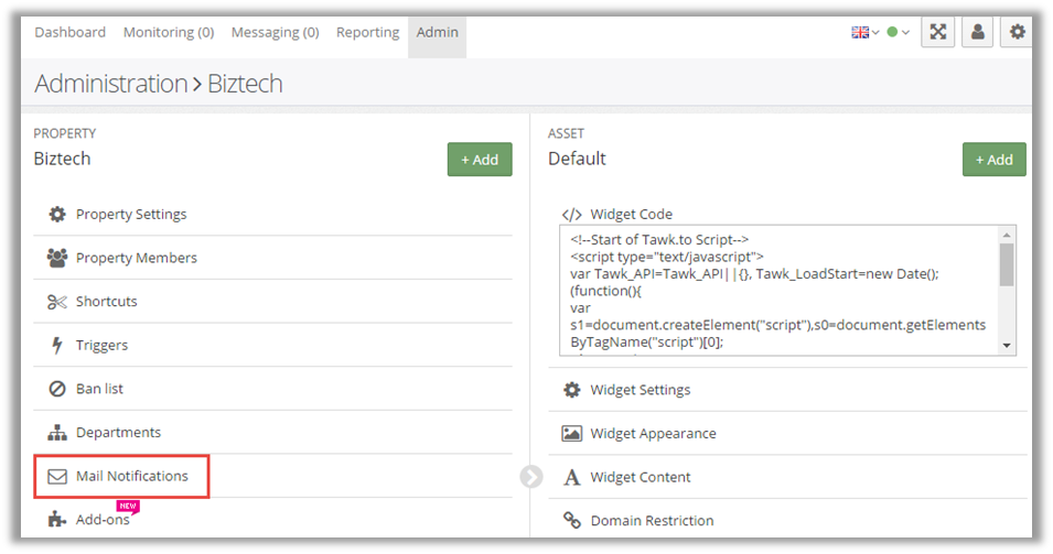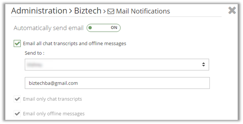 The chats can be monitored from the twak.to dashboard. Once the chat is completed, a transcript of that chat will be generated and sent to the configured email address.