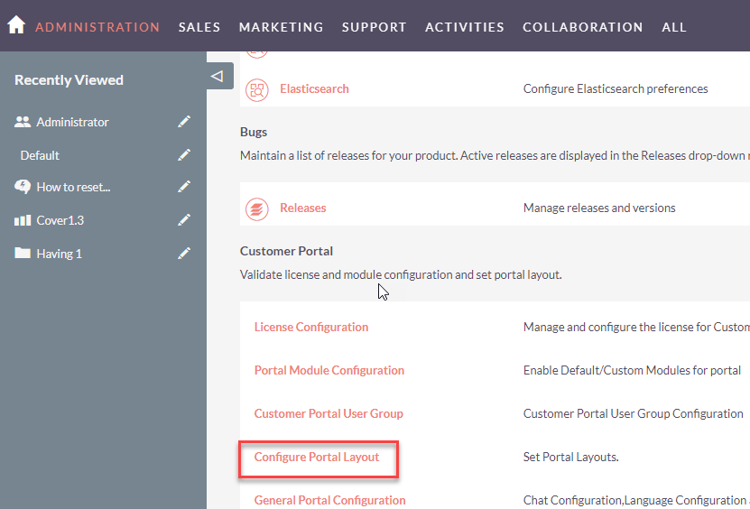 Log-in to your SuiteCRM as admin and go to Administrator Page. You can see the ‘Customer Portal’ section on this page.