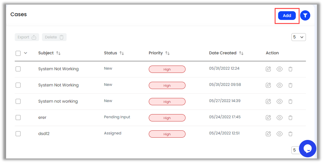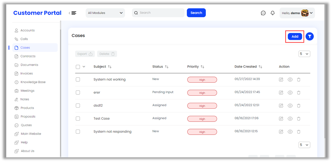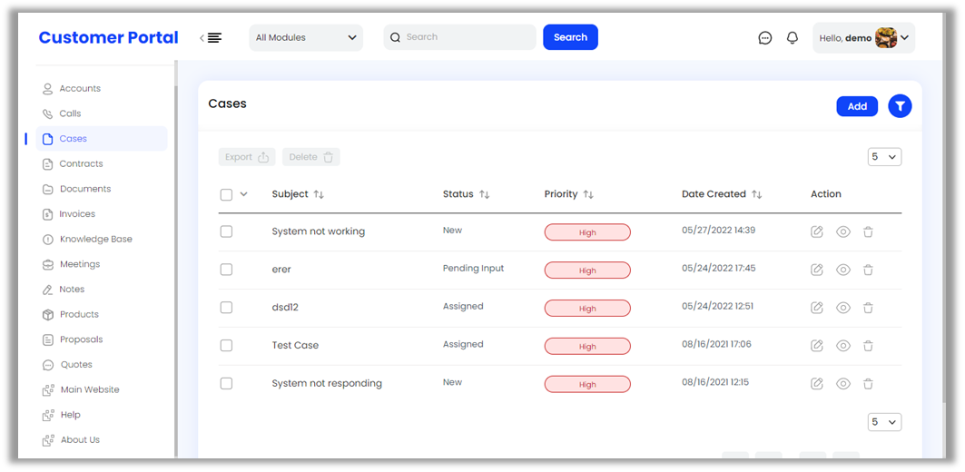 Your customers will be able to see the list of cases by clicking on the Case module.