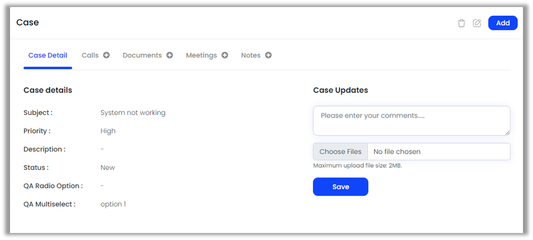 Navigate to Case By clicking on ‘Case’ (‘View’ icon), the details page will be redirected. By scrolling down, the customer will find the sub-panel.