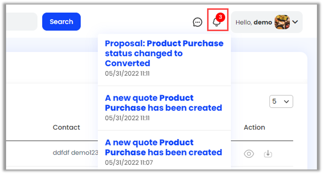 By clicking on the Notification ‘icon’, the customers will get the notification with the highlighted details as shown above image. [2]