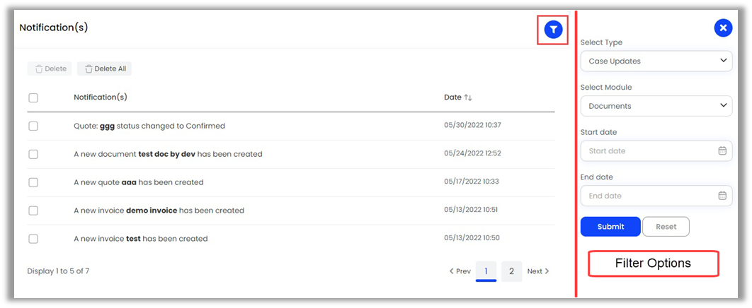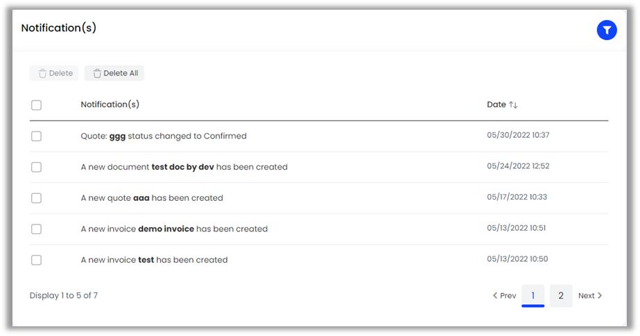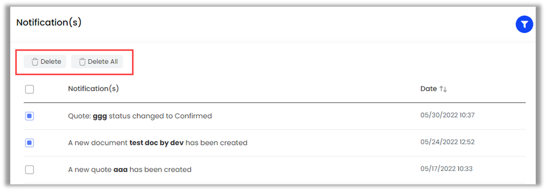 The ‘Delete’ option is also given if the portal user want to delete any notification. You can also delete the unwanted notification from the list. Select notifications and click on “Delete” button or click on “Delete All” button if you want to clear the notification list. [4]