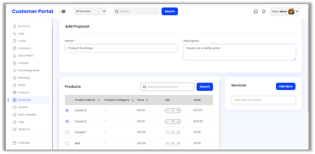 If you would like to customize or discuss about additional feature for Customer Portal, please write to sales@crmjetty.com