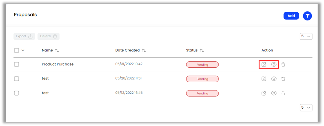 Once the proposal is created, user can edit or delete that proposal only if it is in “Pending” state. [2]