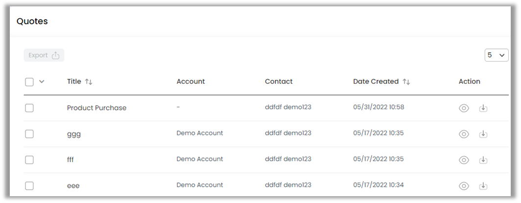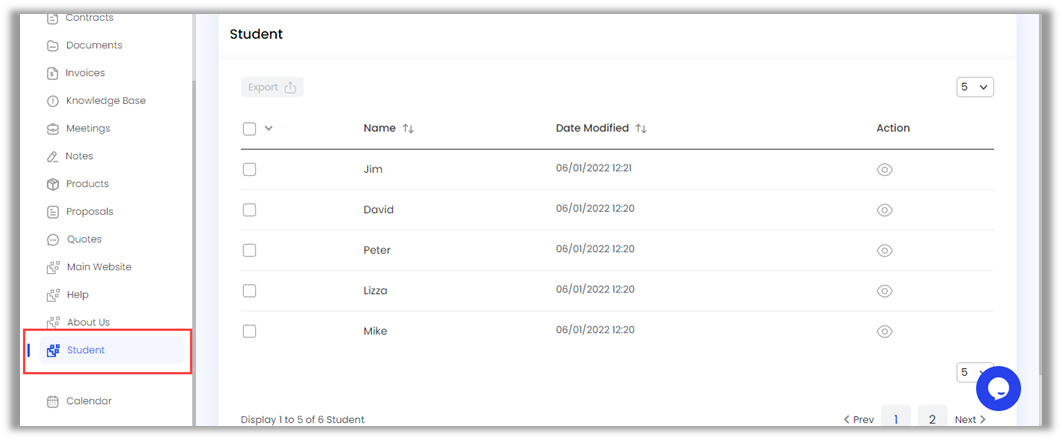 Navigate to any module and you will be able to see the list of records of that module. You can search a record from the list view, delete it, export it as a CSV, or update it. [1]