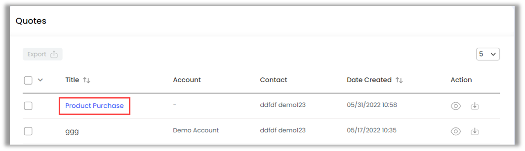 Once the quotes are converted, they will also be listed in detail view of corresponding proposal. [4]