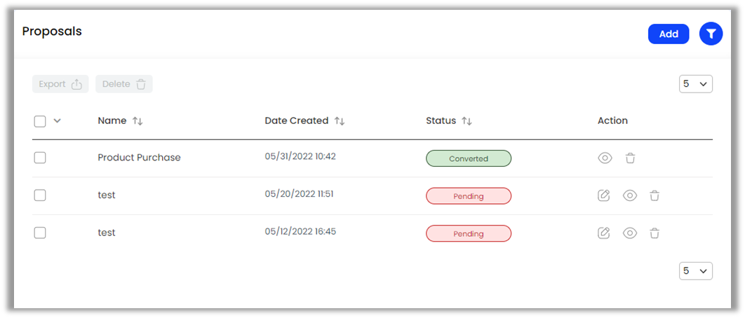 Note: Proposal cannot be changed once the proposal is converted or declined by admin.